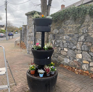 Thanks Fingal County Council for replanting our 3-tier village planters this week. A mix of violas, cyclamens and heathers give lovely colour for winter '22. And the Christmas tree is now in situ too... but no lights yet. Thanks FCC.