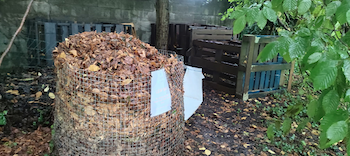 Compost Bays: Equal mix of green (grass) and brown (leaves) waste. (Note grass generates heat)